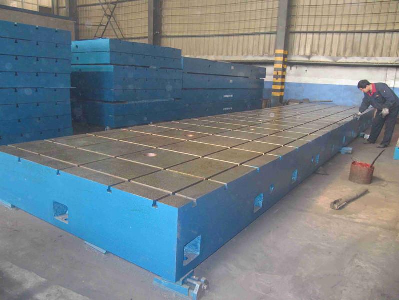 2、工裝平臺(tái)(工裝平板)材料及處理:材料為高強(qiáng)度鑄鐵HT200-300,工作面硬度為HB170-240,經(jīng)過(guò)兩次人工處理(人工退火600度-700度)