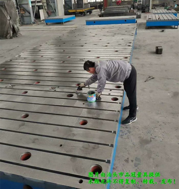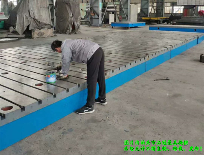 拼接裝配平臺適用于大于4000X8000規(guī)格的大型鑄鐵平板,因?yàn)閱螇K鑄鐵平板面積過大,不容易運(yùn)輸或安裝的大型鑄鐵平板。采用小規(guī)格鑄鐵平板拼接的方式來完成。這種拼接的方式對拼接平臺使用絲毫沒有影響。