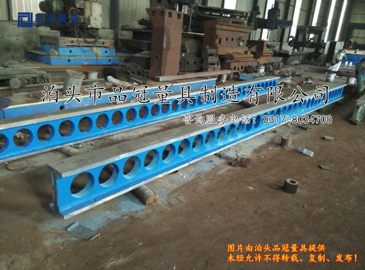 長(zhǎng)條式鑄鐵平臺(tái)/條形鑄鐵平板,主要用于長(zhǎng)條式型材及工件的檢驗(yàn)、劃線基準(zhǔn)工具,泊頭市品冠量具制造有限公司生產(chǎn)制造的長(zhǎng)條式鑄鐵平臺(tái)材質(zhì)采用高強(qiáng)度鑄鐵HT200-300,硬度為:HB170-220、HT-200材質(zhì)配料時(shí)原料含量加配料按含碳量:3.1-3.4 錳:0.6-0.9 硅:1.5-2.0標(biāo)準(zhǔn)。長(zhǎng)條式鑄鐵平臺(tái)經(jīng)過(guò)兩次人工處理(人工退火600度-700度和自然時(shí)效2-3年)使用該產(chǎn)品的精度穩(wěn)定,耐磨性能好用來(lái)進(jìn)行工件的檢驗(yàn)劃線工藝,和焊接平板不同,上面沒(méi)有孔,工作面為平面。